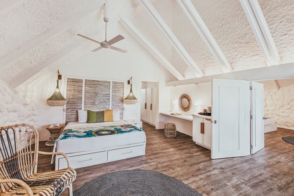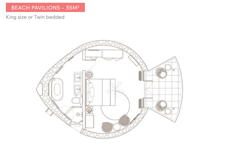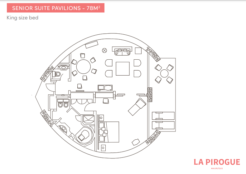 Размещение в одноэтажных бунгало в стиле «бохо шик». Отель открыт одним из первых на Маврикии в 1976. Последняя реконструкция была произведена в 2017 году. Любители игры в гольф могут поиграть бесплатно и воспользоваться трансфером на лодке от мыса Морис до 18-луночного поля для гольфа Ile Aux Cerfs Golf Club (20 минут езды).