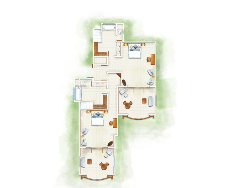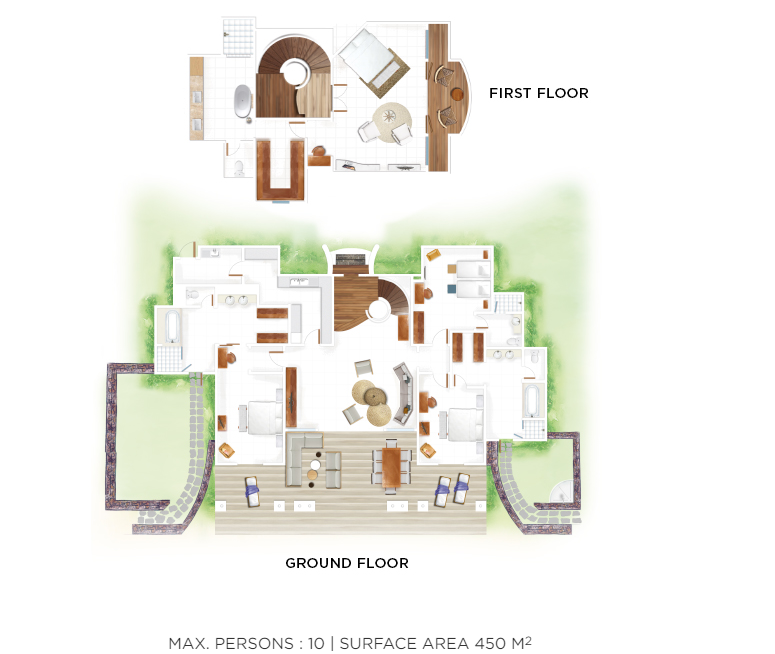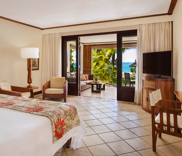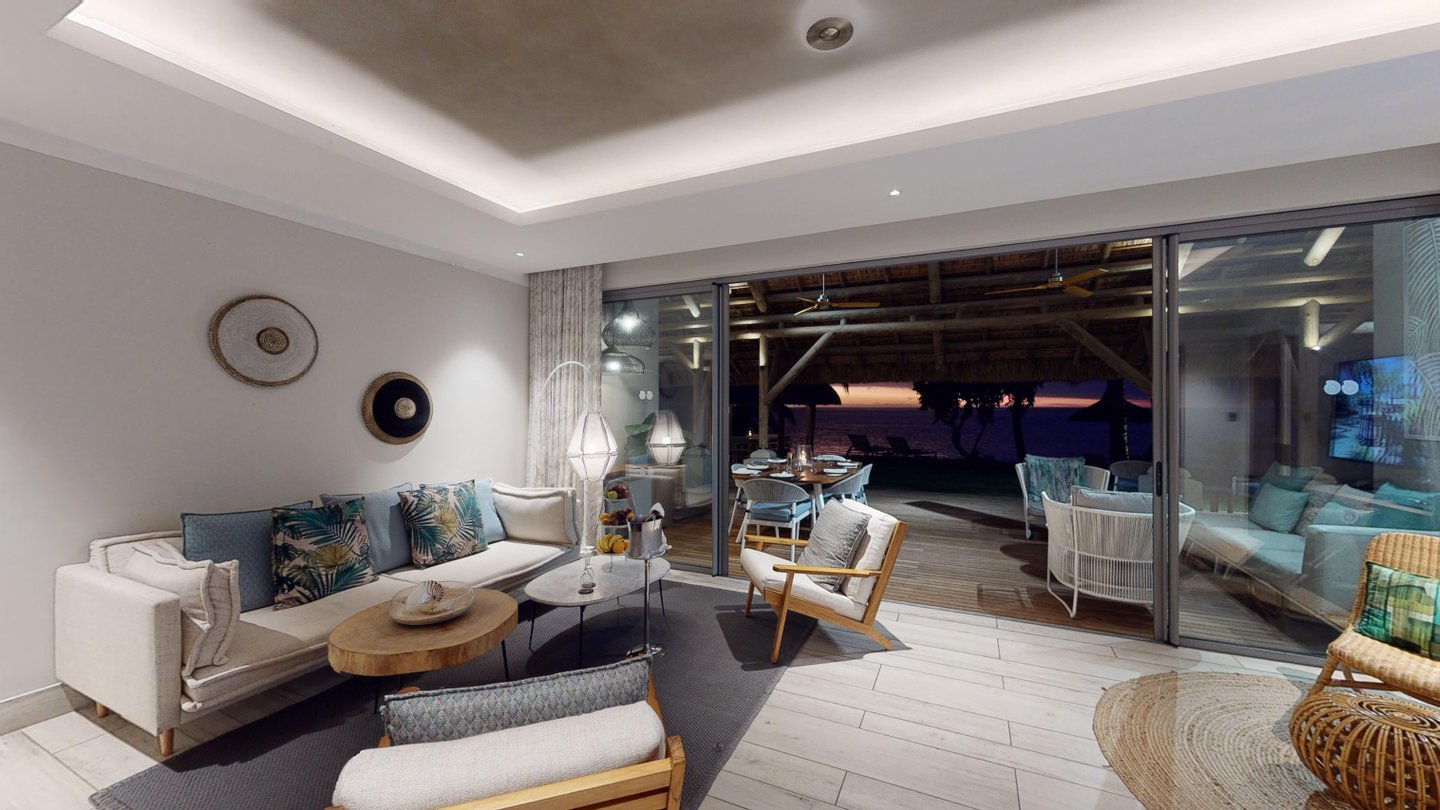 Образуется объединением двух номеров категории Junior Suite Beachfront, 2 спальни, 2 ванные комнаты с ванной и душем, 2 террасы;