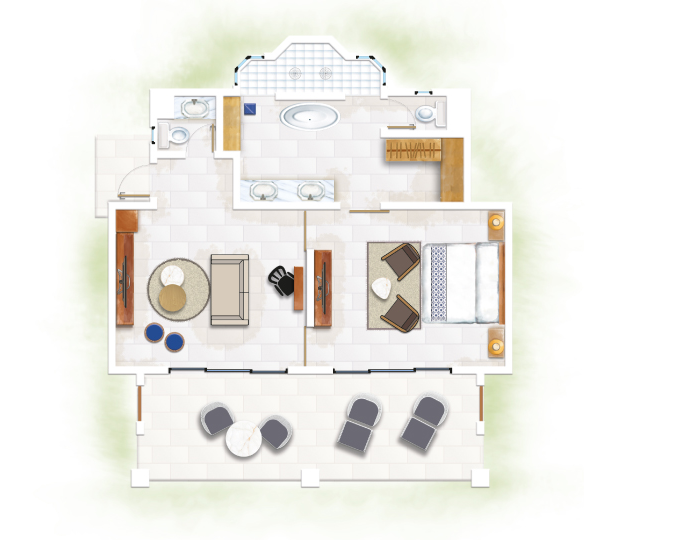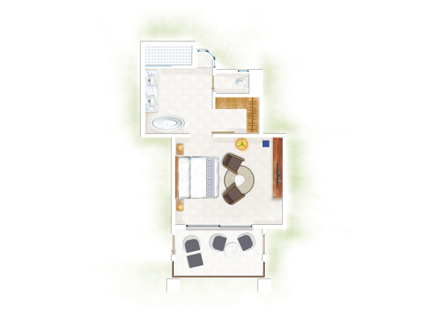 - 40 номеров Junior Suite Ground Floor (76 м², макс. 3 или 2+2).