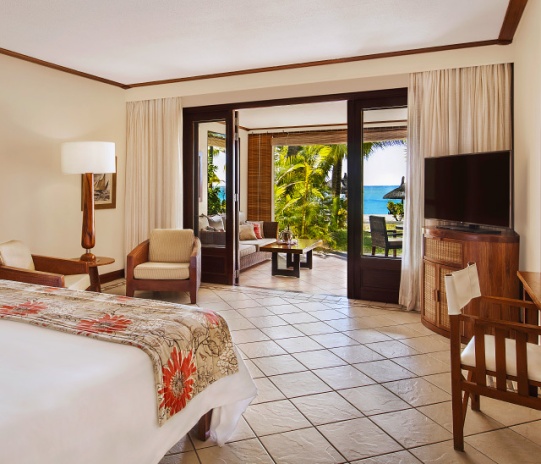 Двуспальная кровать, гостиная зона с креслами, ванная комната с ванной и душем, меблированная терраса, прямой доступ на пляж, панорамный вид на океан;
