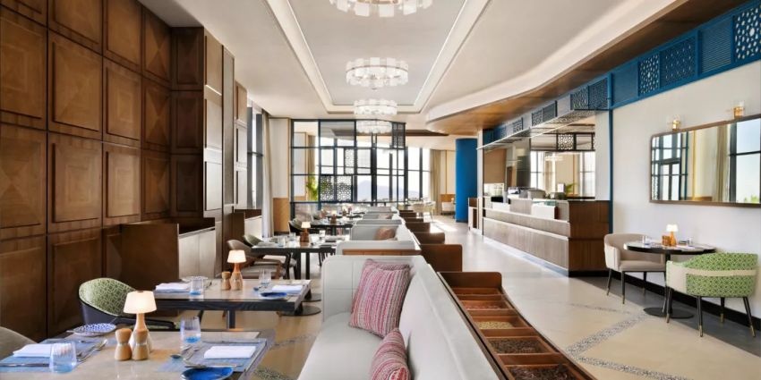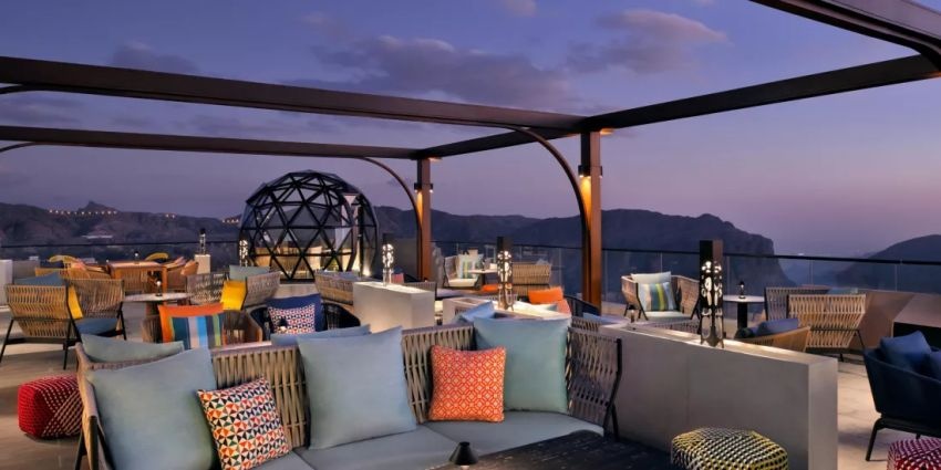 В Jala Spa доступны оздоровительные процедуры мирового уровня, термальные зоны, гималайские соляные комнаты и бассейны для восстановления. В ресторане подаются изысканные блюда международной и оманской кухни, а в Vue Rooftop Lounge можно насладиться коктейлями и видами на закат.
