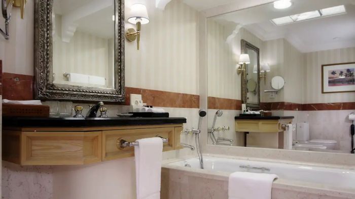 В номерах: письменный стол, халаты, фен, телевизор со спутниковыми каналами, 3 или более телефонов, Wi-Fi, кондиционер, потолочный вентилятор, сейф, минеральная вода, набор для приготовления чая/кофе, утюг и гладильная доска (по запросу), банные принадлежности.