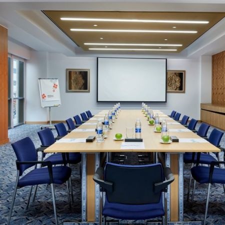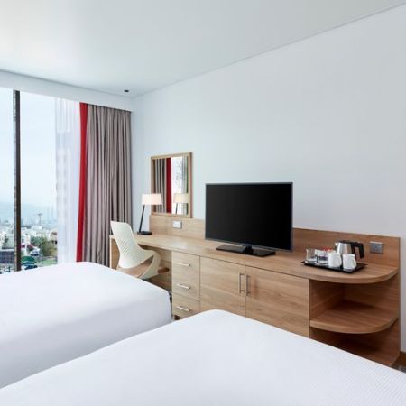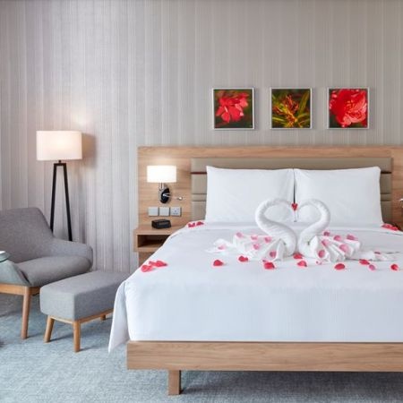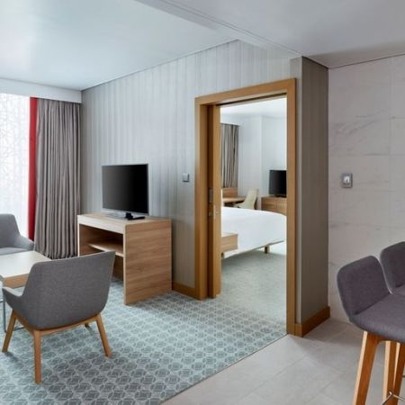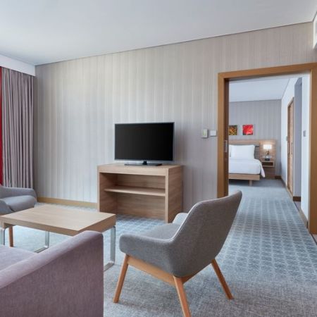 В номерах: Wi-Fi, телевизор с HD каналами, мини-холодильник, письменный стол, эргономичный стул, кондиционер, набор для приготовления чая/кофе, ортопедический матрас, пуховое одеяло и подушки из пены с эффектом памяти, фен, банные принадлежности, шторы black-out, утюг и гладильная доска, телефон с голосовой почтой, сейф.