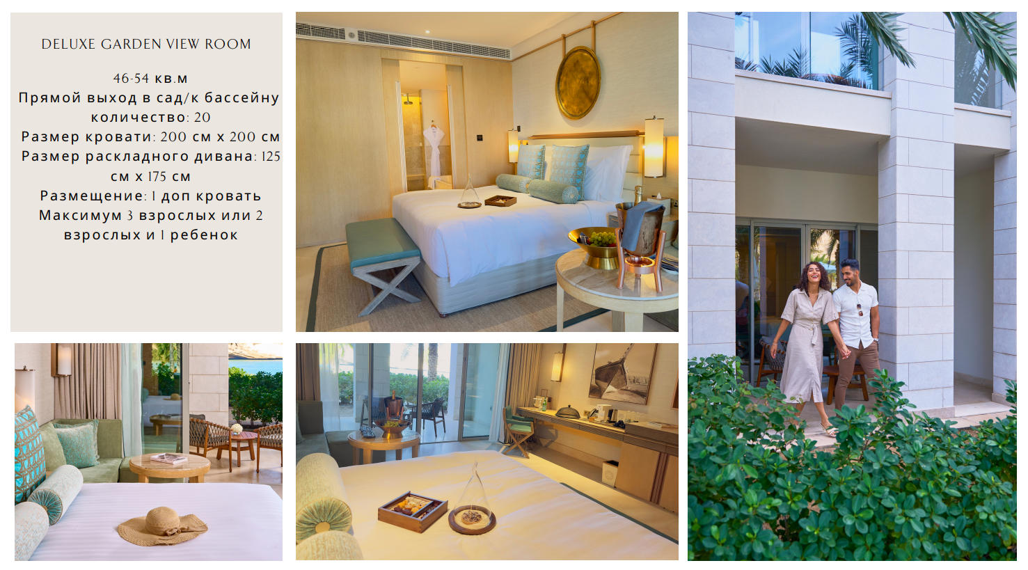 - 20 номеров Deluxe Garden Room (46-54 м², макс. 2+1).