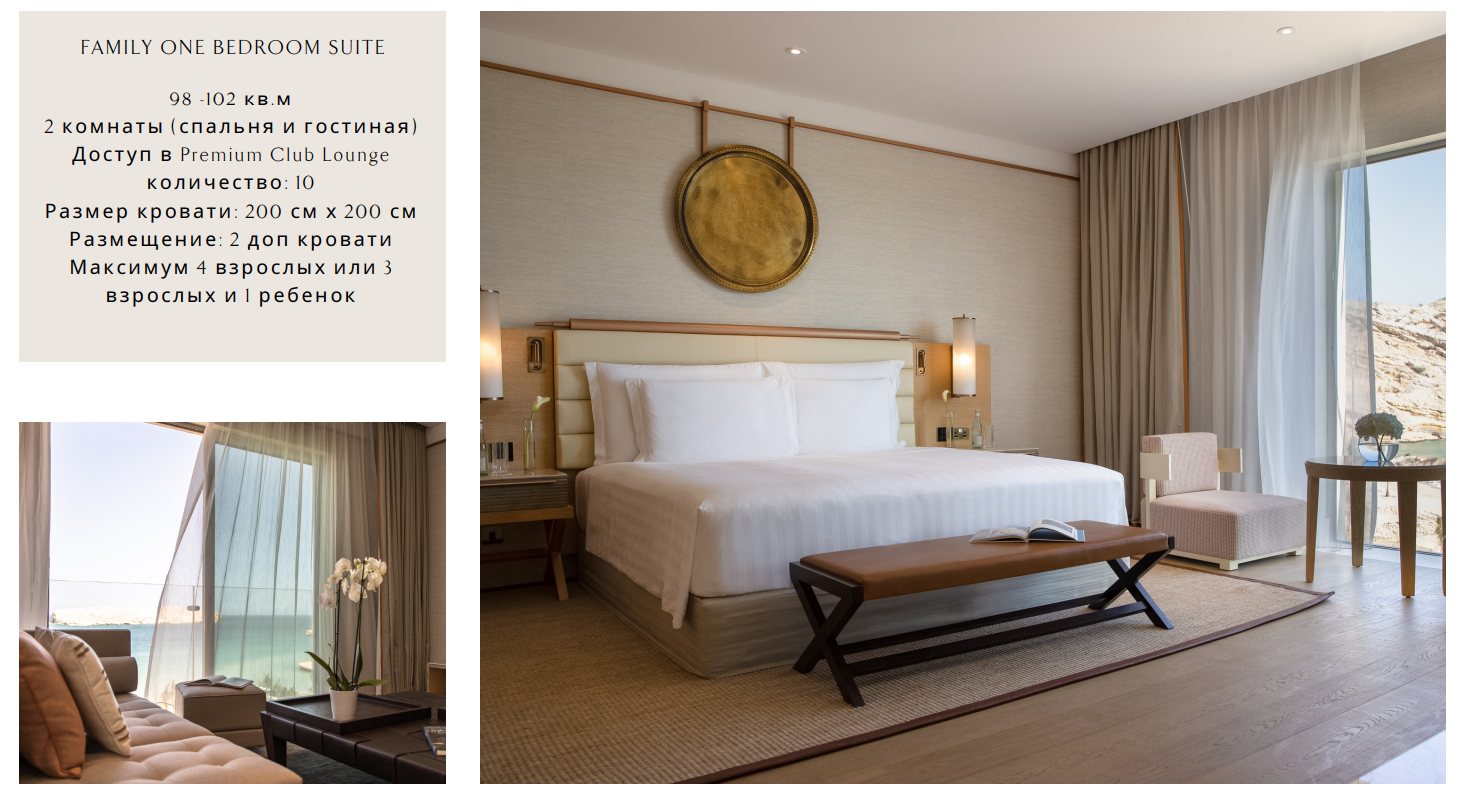 - 10 номеров Family 1 Bedroom Suite (98-102 м², макс. 3 или 2+2).