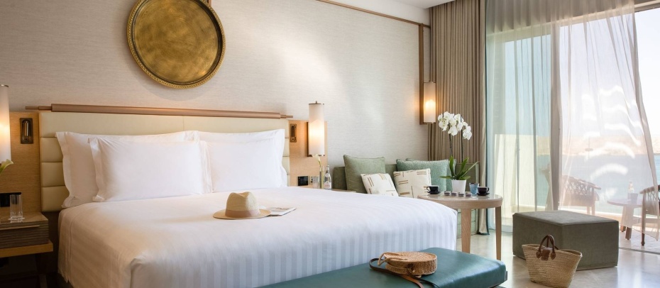 Двуспальная кровать king-size или 2 односпальные кровати, гостиная зона с диваном-софа, ванная комната с ванной и душем, терраса или балкон, прямой доступ к саду, вид на залив, с правом посещения клубного лаунжа, см.описание и фото;