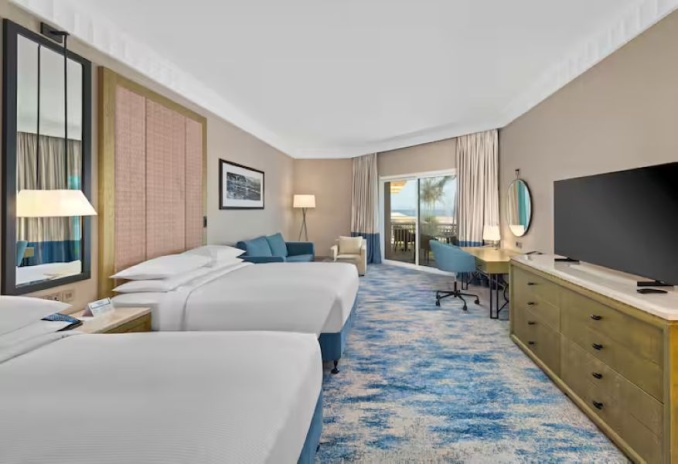 Hilton Salalah Resort — современный пляжный курорт на побережье Индийского океана в Салале, сочетающий комфорт, развитую инфраструктуру и удобное расположение рядом с центром города и аэропортом. Отель предлагает просторные номера с видом на море или сад, частный песчаный пляж, бассейн с водной горкой, рестораны международной и ближневосточной кухни, теннисные корты, детский клуб и сезонный дайвинг-центр.