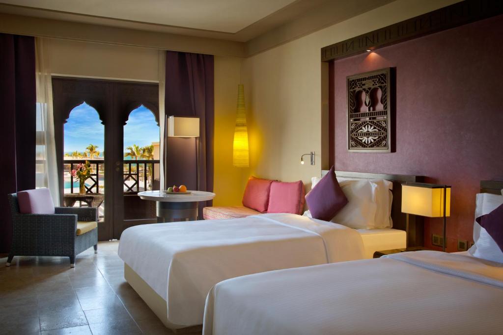 Архитектура отеля выдержана в оманском стиле. К услугам гостей – 2 открытых плавательных бассейна, оздоровительный фитнес-клуб Bodylines, спа-центр Zen at Rotana, теннисные корты, детский клуб Flipper’s.