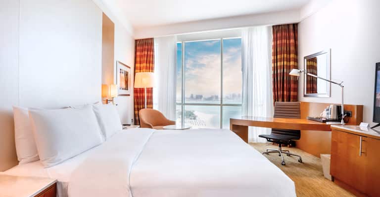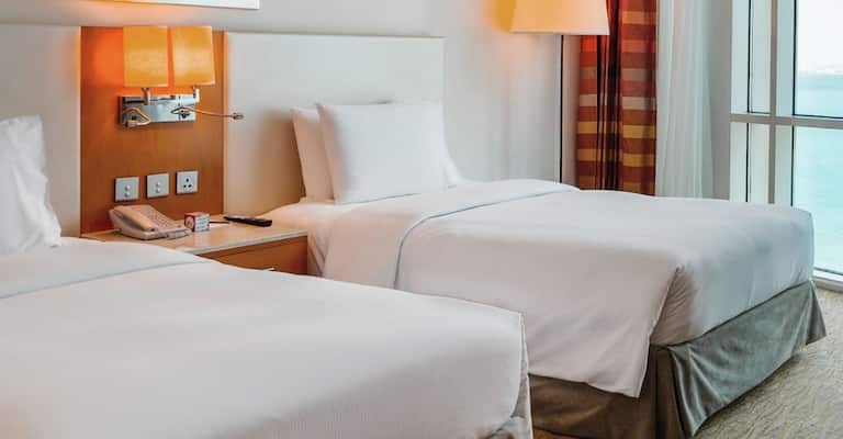 2 спальни: двуспальная кровать king-size и 2 односпальные кровати, отдельная гостиная комната с диваном и обеденным столом, 2 ванные комнаты, окна от пола до потолка, вид на океан, доступ в эксклюзивный лаунж-клуб, где сервируется бесплатный завтрак и подаются вечерние напитки;
