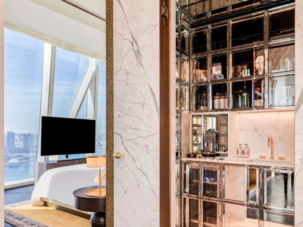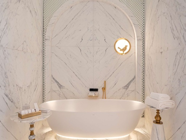 В номерах: высокоскоростной Wi-Fi, планшет для управления сервисами номера, бар, кофемашина Nespresso, банные принадлежности, персональная подготовка номера ко сну, Raffles батлер сервис.