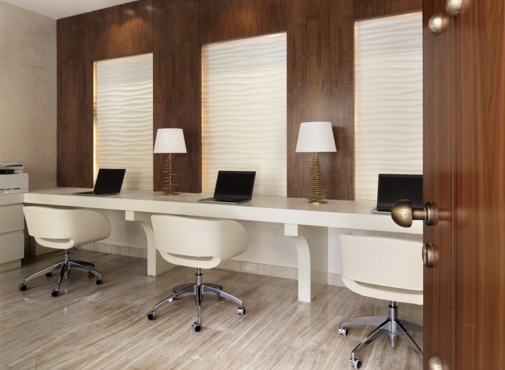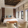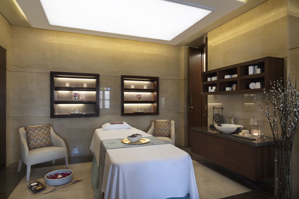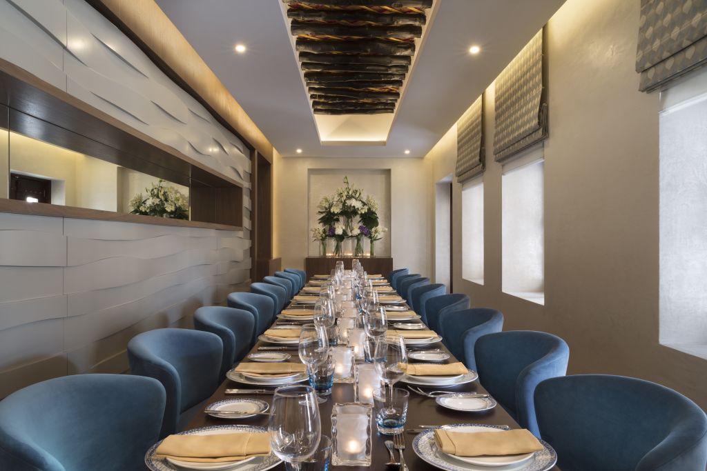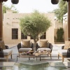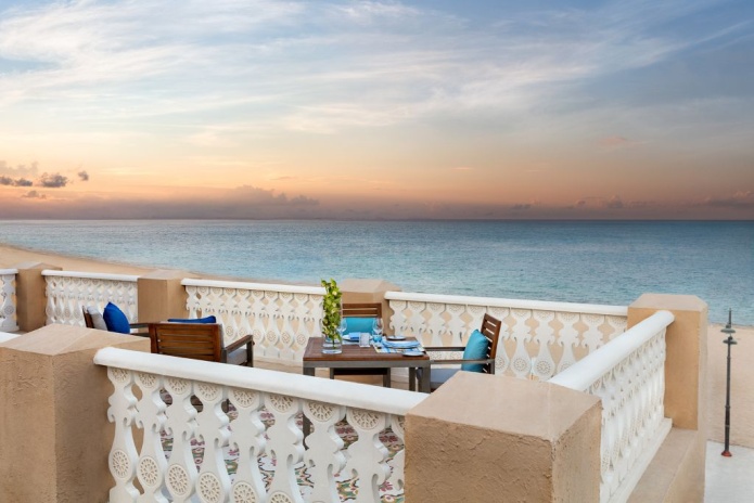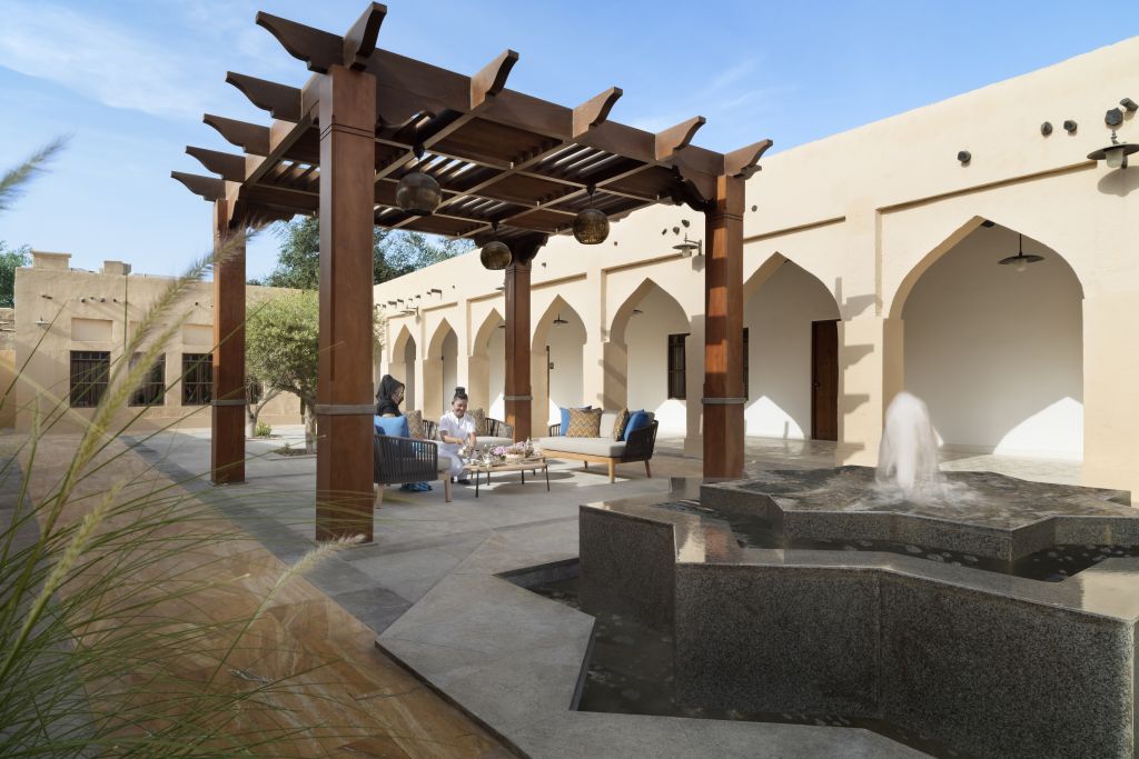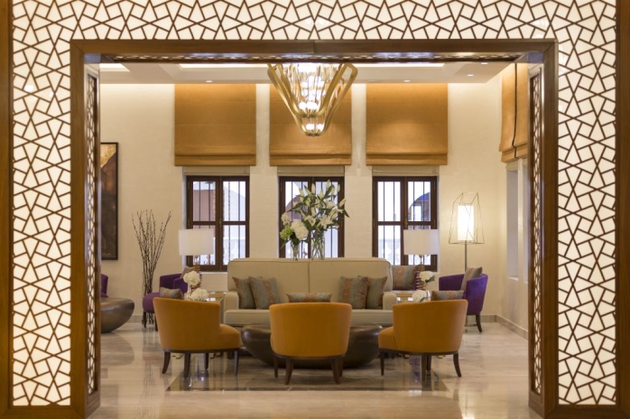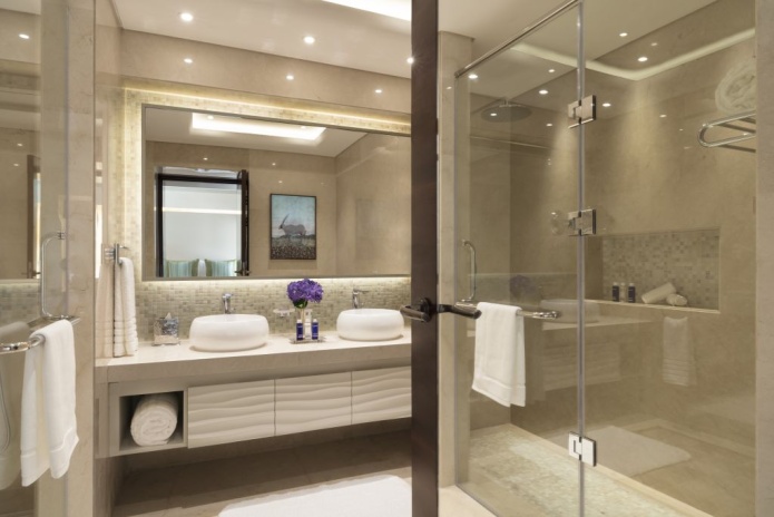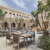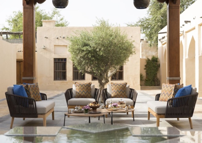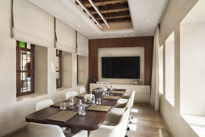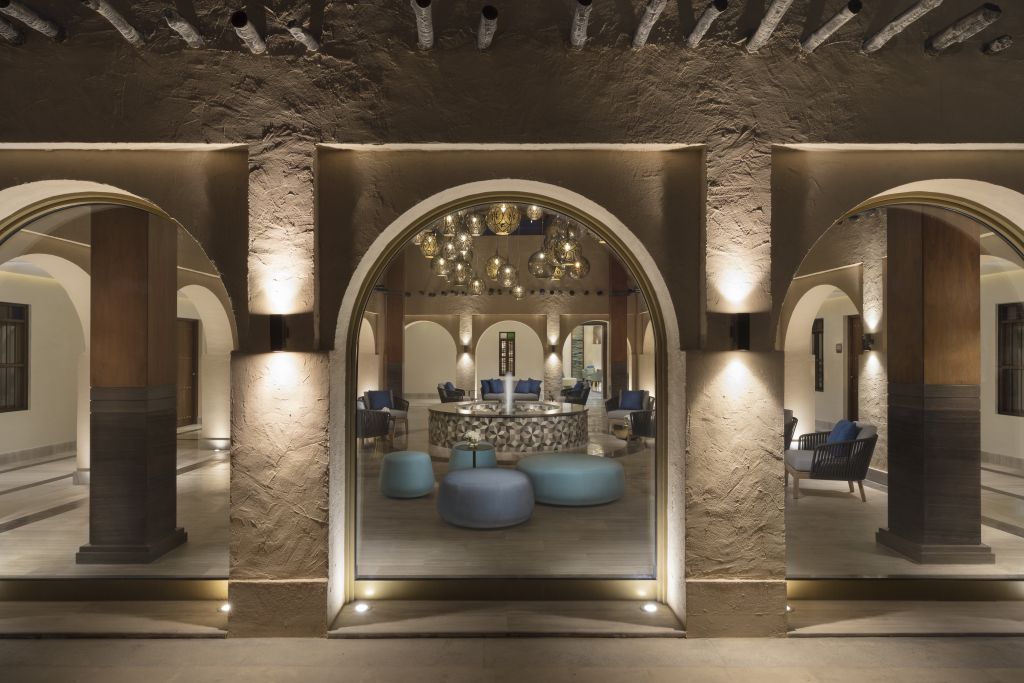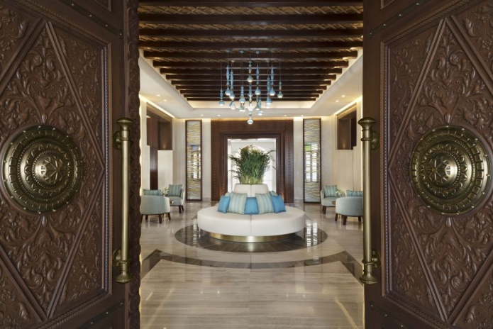 В интерьерах номеров использованы природные материалы, а также элементы традиционного катарского стиля. Некоторые номера выходят окнами на залив, другие — на внутренние дворы.