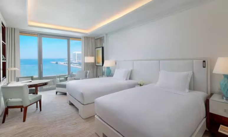 2 смежных номера Deluxe Sea View: двуспальная кровать king-size и 2 двуспальные кровати queen-size, 2 ванные комнаты с ванной и душем, 2 балкона, вид на залив;
