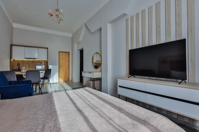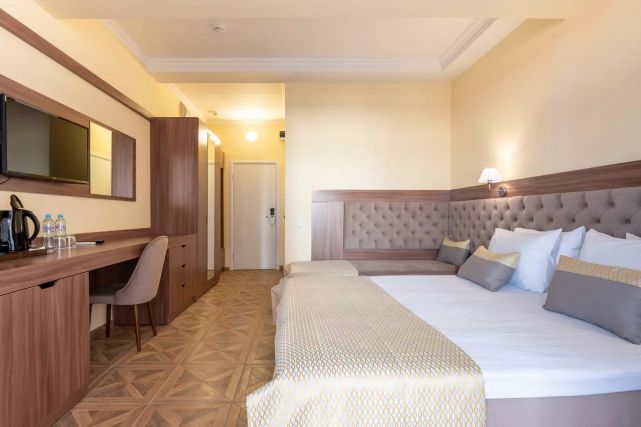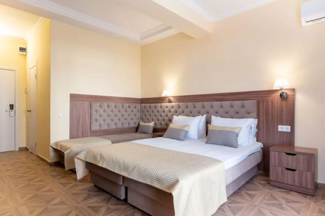 В номерах: кондиционер, система климат-контроля, мини-холодильник, телефон, телевизор, банные принадлежности, зеркало для макияжа, шкаф, сушилка для белья, туалетный столик.