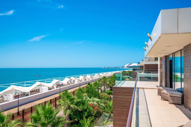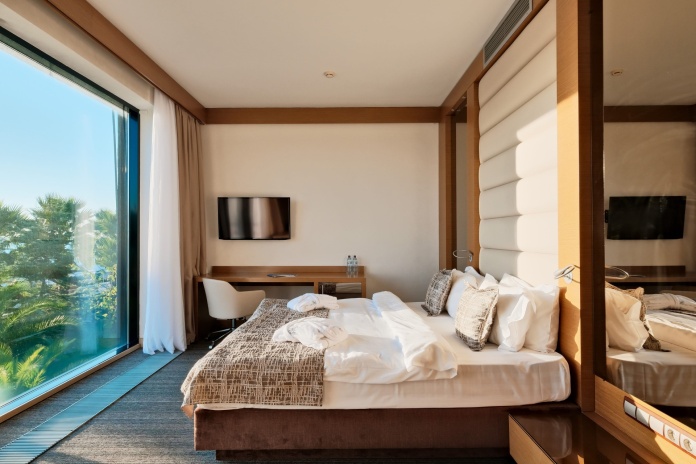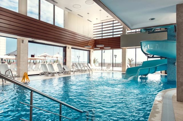 В отеле есть 2 бассейна с игровой зоной, спа-центр с турецкой и финской саунами, водные горки и тренажерный зал.