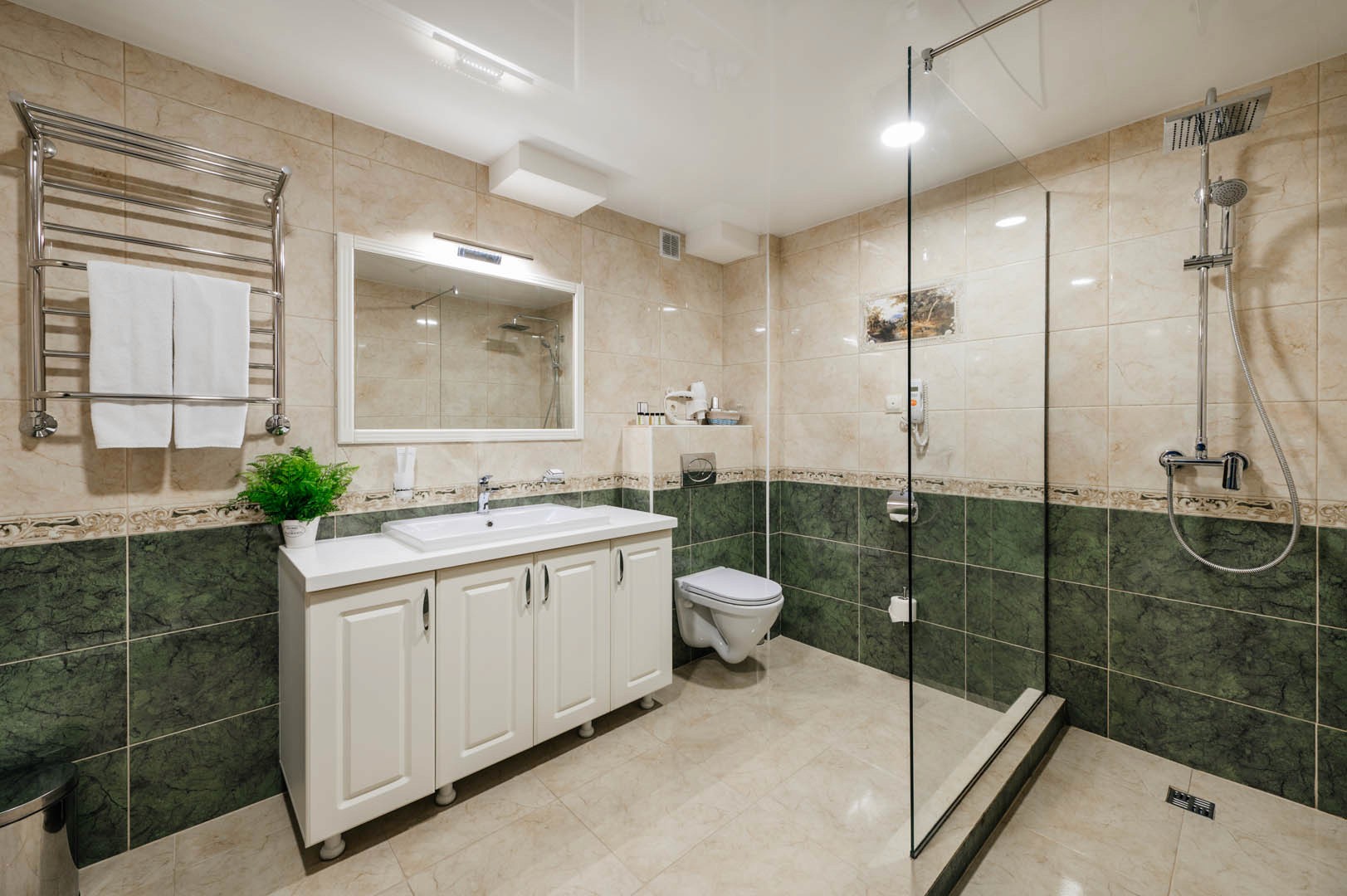 В просторных стильных номерах есть балкон, кондиционер, сейф и утюг.