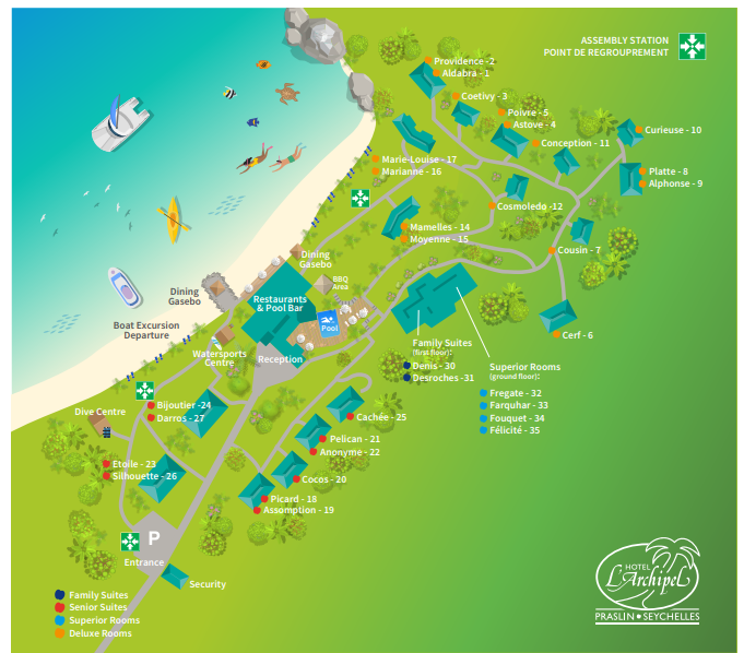 L’Archipel – элегантный, уединенный отель с с видом на частный пляж Anse Gouvernment, прекрасной кухней, роскошными номерами и дружеской атмосферой. Отель расположен на берегу живописной бухты на северо-восточном побережье острова Праслин.