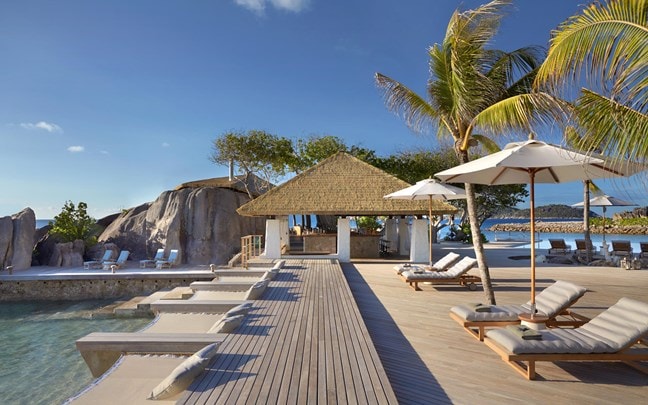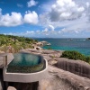 Расположены недалеко от пляжа Grande Anse, двуспальная кровать, просторная гостиная зона с креслом и диваном, зона гардеробной, ванная комната с ванной и душевой кабиной, просторная терраса с шезлонгами и обеденной зоной, персональный бассейн (20 м²), вид на океан, план номера;