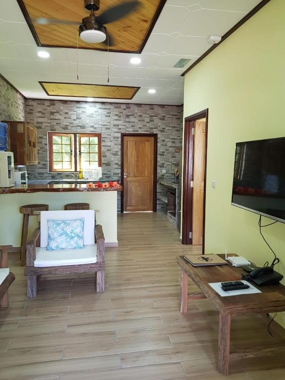 Во всех номерах: вид на горы и сад, балкон, зона гостиной с диваном, в спальне есть ортопедический матрас и пуховые подушки, отделанная мрамором ванная комната с бесплатными туалетно-косметическими принадлежностями, халатами и сушилкой для белья, кухня (холодильник, кофеварка, микроволновая печь, плита, электрический чайник, посуда, стиральная и сушильная машины, обеденный стол, тостер), фен, телевизор, постельное бельё, кондиционер, полотенца, вентилятор, чистящие средства, утюг.