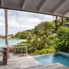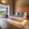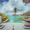 Двуспальная кровать, гостиная зона с диваном-софа, ванная комната с ванной, душем и двумя раковинами, меблированная терраса, персональный бассейн, вид на океан.