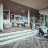 Двуспальная кровать, гостиная зона с диваном-софа, ванная комната с душем и двумя раковинами, меблированная терраса, вид на океан;