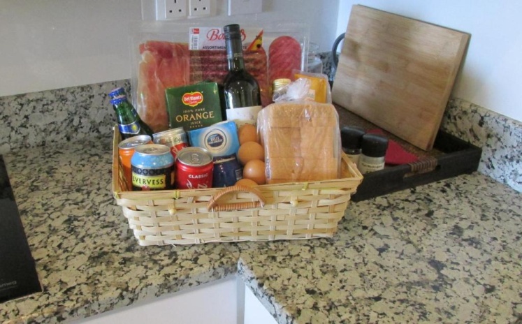 и холодильник, кофемашина, индукционная плита, духовой шкаф, микроволновая печь, тостер, обеденный стол, стиральная машина, Wi-Fi, электрический чайник, посуда, посудомоечная машина, чистящие средства, ванные принадлежности, халат, полотенца, тапочки, фен, шкаф, кондиционер, утюг, вентилятор, сейф, телевизор, телефон, аудиоколонки bluetooth, игральные карты, принадлежности для барбекю, наборы для приготовления чая/кофе.