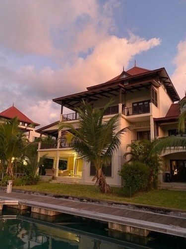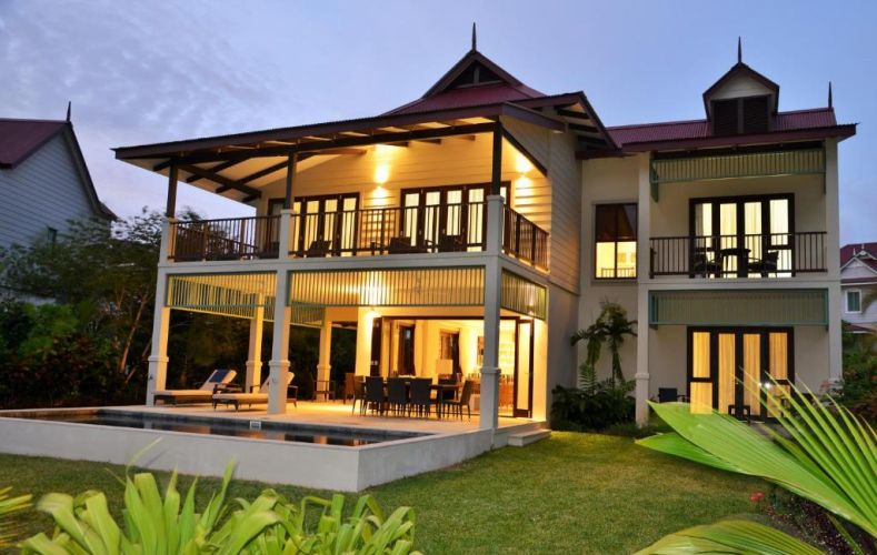 Двухуровневые дома, 4 спальни (двуспальные и односпальные кровати), 4 ванные комнаты, отдельная гостиная комната с полностью оборудованной кухней, балкон, небольшой бассейн, большая веранда с барбекю грилем, а также гольф кар для передвижений по острову, каждый коттедж расположен на отдельном участке, окружен садом и имеет выход на пристань;