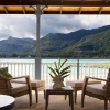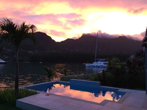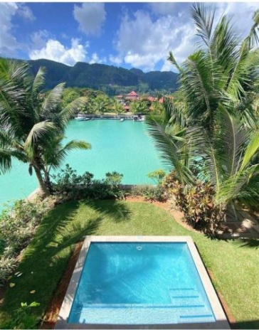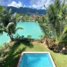 1 спальня с двуспальной кроватью, отдельная гостиная комната с диваном и кухней, ванная комната с душем, балкон или терраса, вид на пристань, горы или пляж, крытая веранда с барбекю грилем и гольф кар для передвижений по острову;