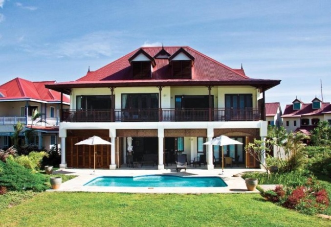 Двухуровневые дома, 4 спальни (двуспальные и односпальные кровати), 4 ванные комнаты с ванной или душем, отдельная гостиная комната с полностью оборудованной кухней, балкон, персональный бассейн бóльшего размера, просторная веранда с барбекю грилем, а также гольф кар для передвижений по острову, каждый коттедж расположен на отдельном участке, окружен садом и имеет выход на пристань;