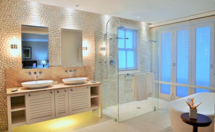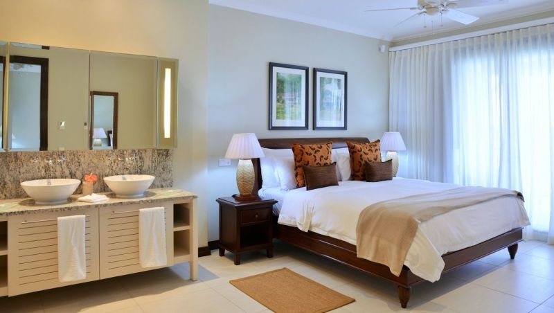 Виллы с бассейном, 5 спален (двуспальные и односпальные кровати), 5 ванных комнаты, отдельная гостиная комната с душем или ванной, терраса, вид на океан, каждая вилла дополнена изысканной отделкой и мебелью, большая веранда с барбекю грилем, гольф-кар для передвижения по острову.