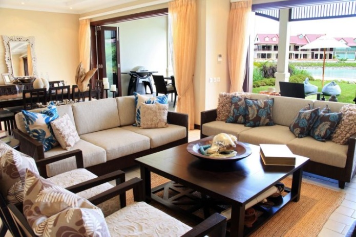 Двухуровневые дома, 3 спальни, 3 ванные комнаты с душем, отдельная гостиная комната с полностью оборудованной кухней, балкон, небольшой бассейн, большая веранда с барбекю грилем, а также гольф кар для передвижений по острову, каждый коттедж расположен на отдельном участке, окружен садом и имеет выход на пристань;