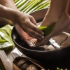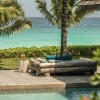 Находятся в нескольких шагах от береговой линии, двуспальная кровать king-size или 2 кровати размера queen-size, гостиная зона с диваном, ванная комната с ванной и душем, душ под открытым небом, гареробная, терраса, небольшой персональный бассейн, вид на сад, план номера;