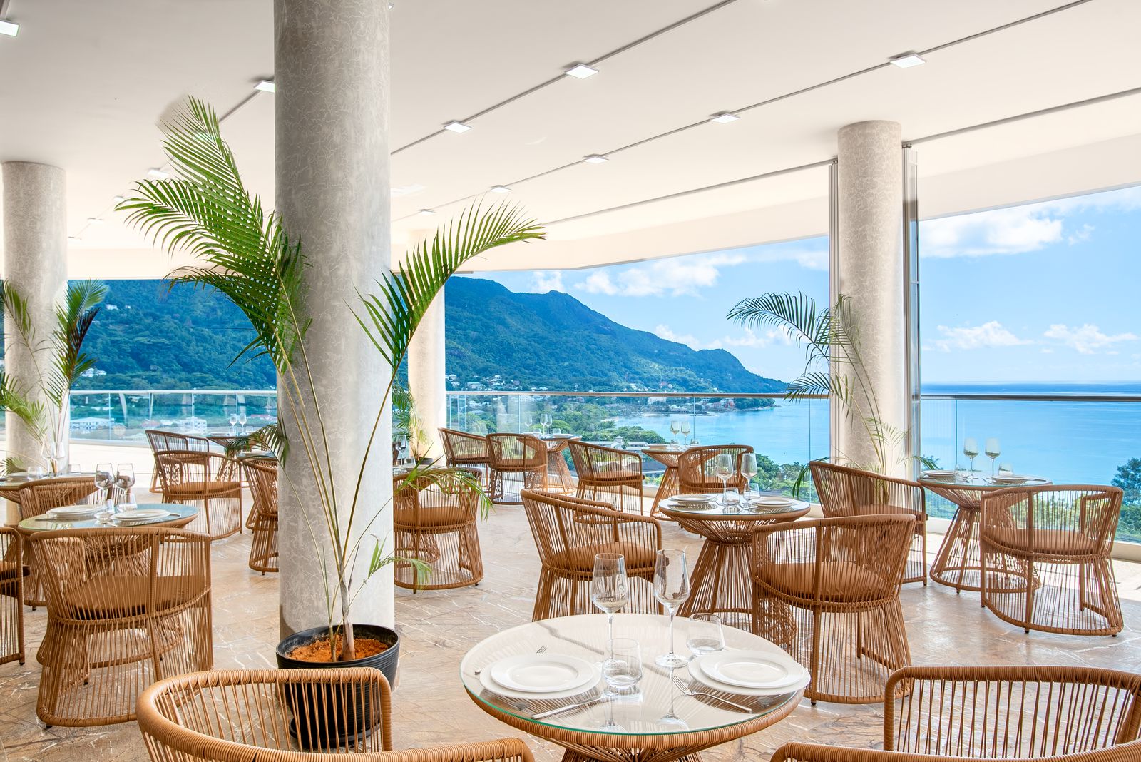 • ресторан-бар  L’Île Gourmet с панорамным видом на океан (сочетание местной и средиземноморской кухни), вместимость:  130 посадочных мест, вместимость бара – 16 посадочных мест. Завтрак: 07:00 – 10:30, ужин с 18:30 (последний заказ в 22:00).