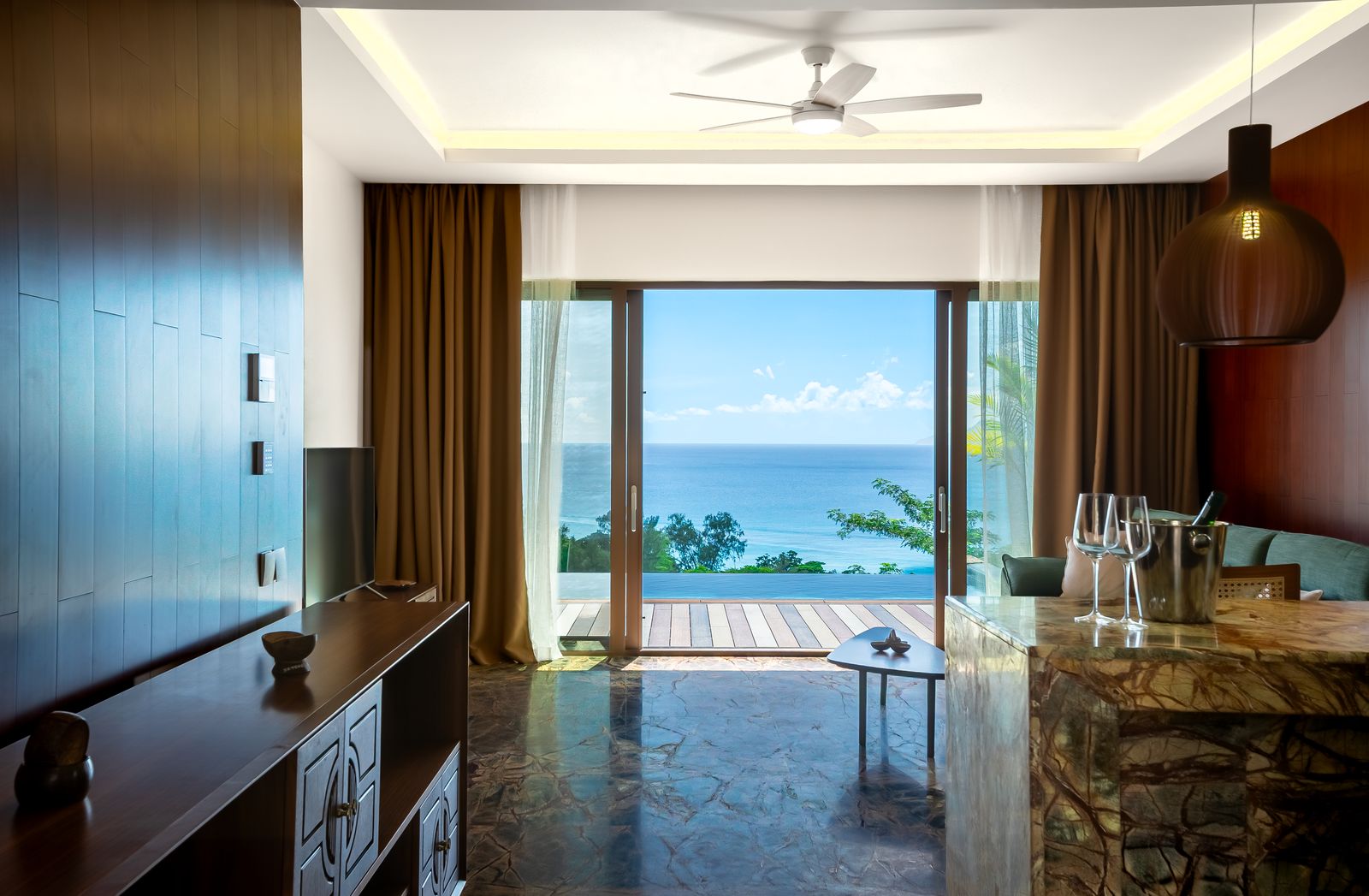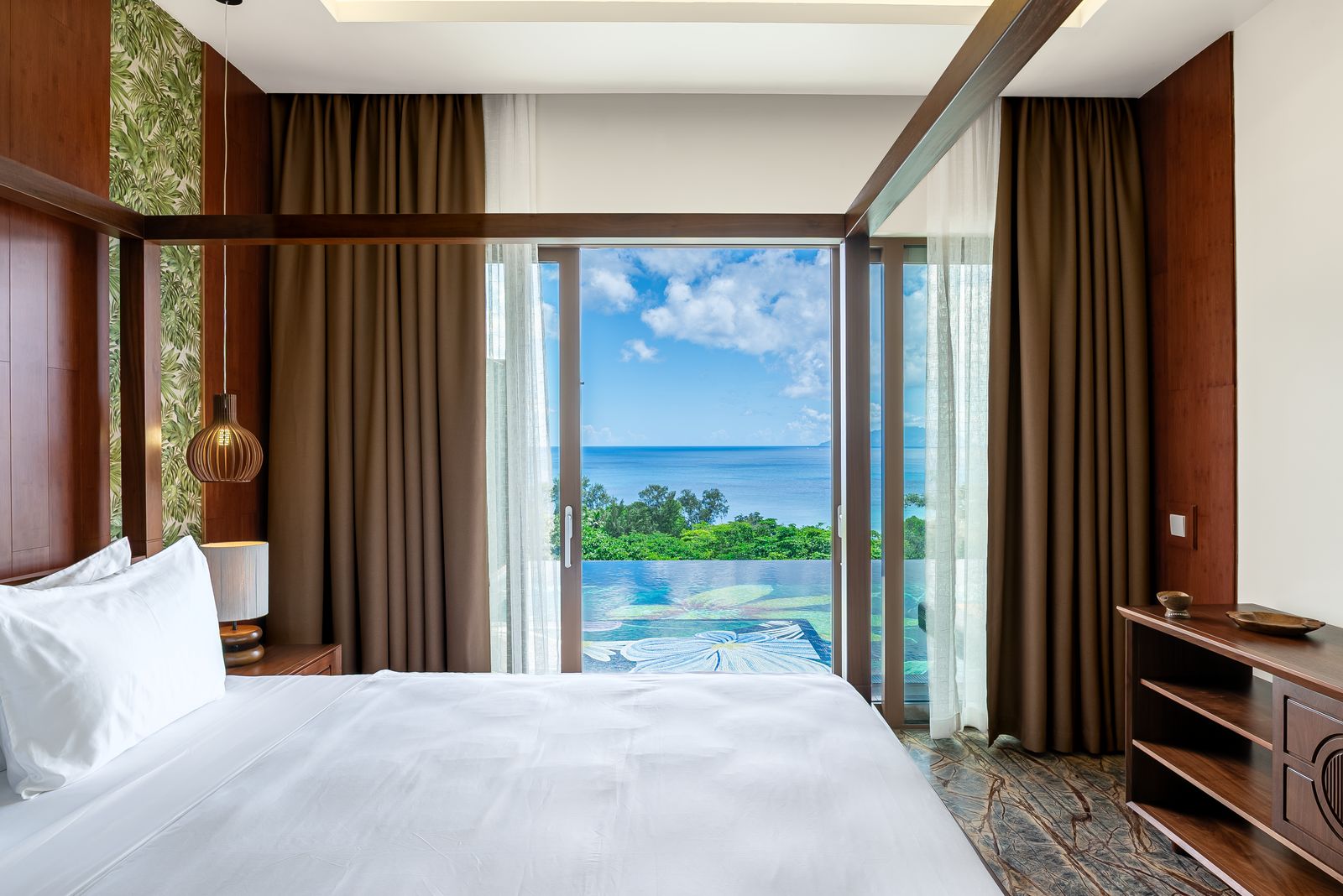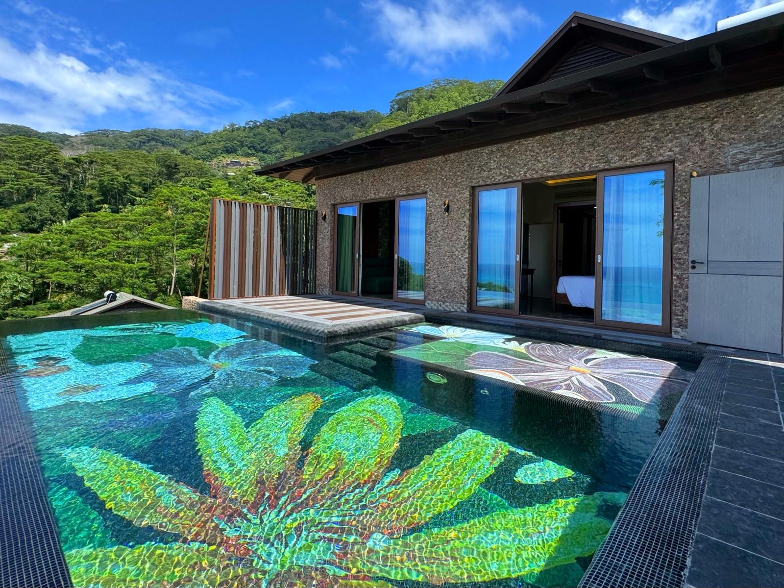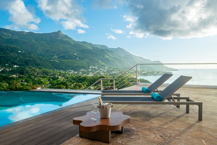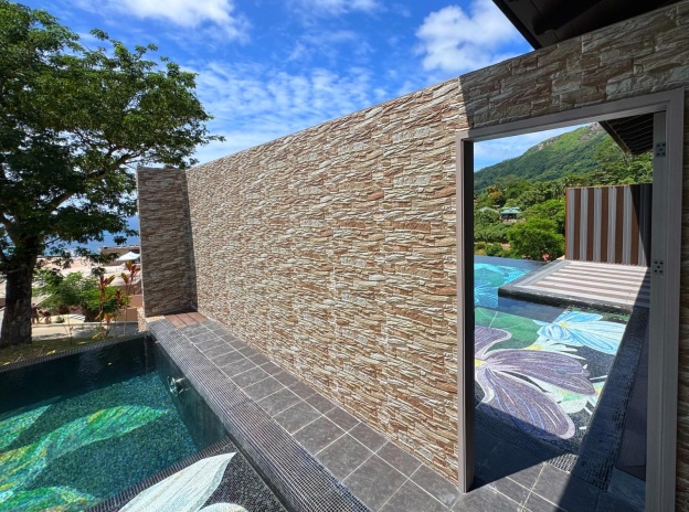 Каждая вилла носит имя уникального цветущего растения, родного для Сейшельских островов, спальня с двуспальной кроватью king-size, просторная гостиная комната, кухня, ванная комната частный 9-метровый бассейн, вид на океан.