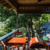 Расположены в тропическом лесу, двуспальная кровать king-size, гостиная зона с диваном, ванная комната с гидромассажной ванной и душем, балкон, вид на закат, план номера;