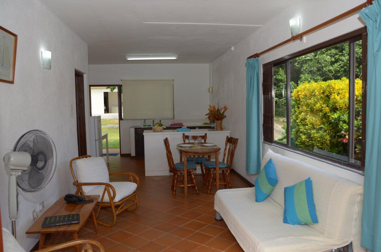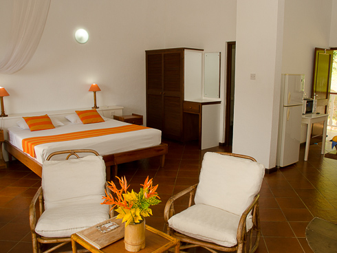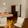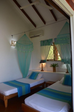 В номерах: потолочный вентилятор, кондиционер, кухонное оборудование (холодильник, чайник, посуда и т.д.), собственная ванная комната, ежедневная уборка.