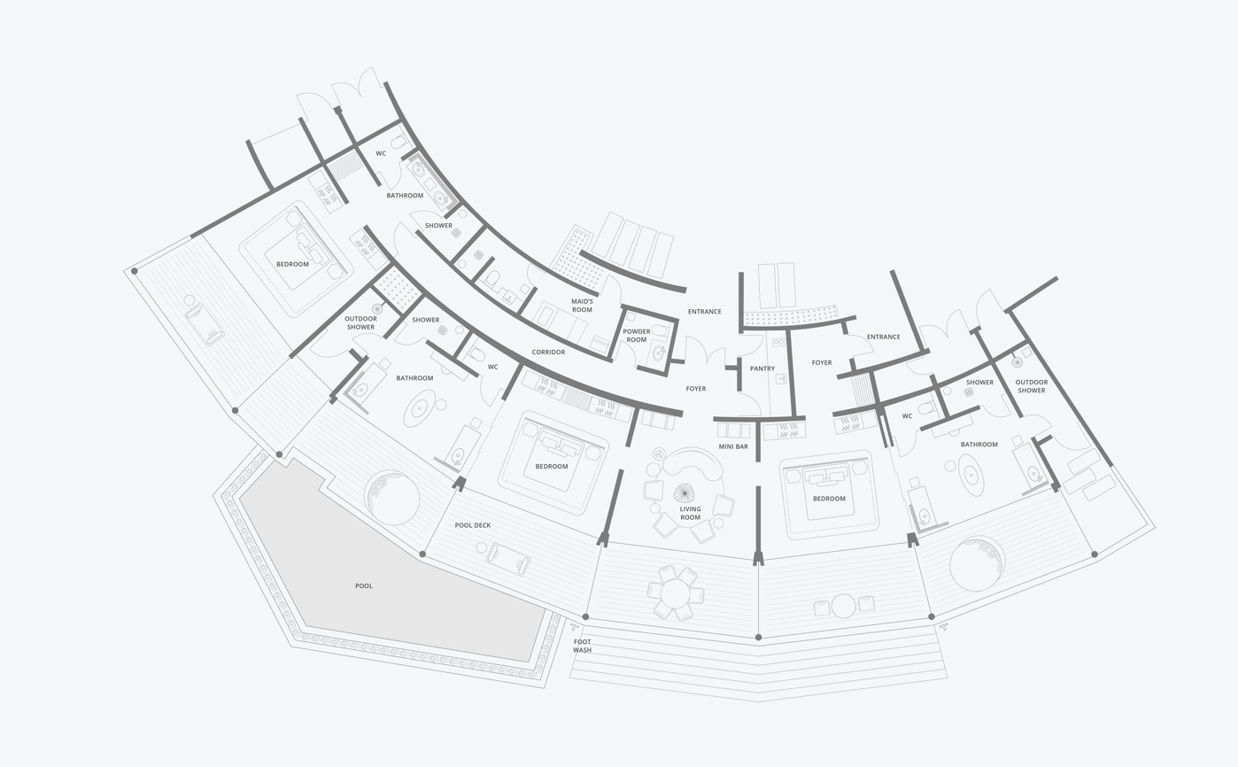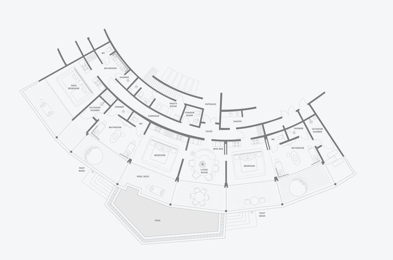 Отель располагает коллекцией из 50 пляжных вилл, в числе которых есть виллы с 5 спальнями. К услугам гостей 6 ресторанов и баров от удостоенного наград шеф-повара, спа-центр, программы экологического просвещения, рыбалка, кинотеатр под открытым небом и подводное плавание.