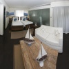 • Ванная комната с ванной и душем, увеличительное зеркало, весы, туалетно-косметические принадлежности «L'Occitane En Provence», халат, тапочки, фен
