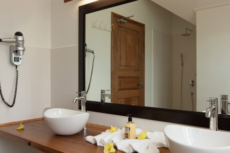 Во всех номерах: ванная комната с душем, фен, посуда на кухне, плита, микроволновая печь, электрочайник, тостер, холодильник, морозильная камера, спутниковое телевидение, Wi-Fi, сейф, телефон, потолочный вентилятор, кондиционер, балкон или терраса, мебель сделана из местных твердых пород дерева.