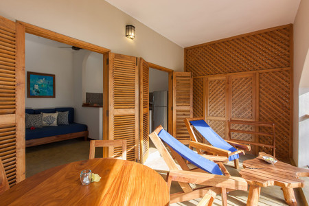 Отель состоит из десяти современных и комфортабельных апартаментов с одной спальней и одного лофта в мансарде с видом на океан. Подходит для семейного отдыха.