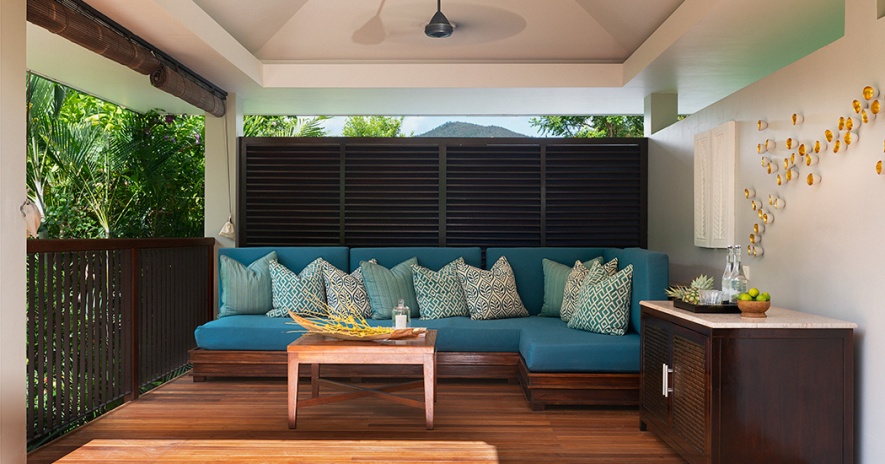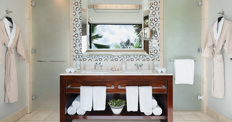 Расположены у пляжа, 2 спальни: двуспальная кровать king-size и двуспальная кровать queen-size, отдельная гостиная комната, 2 ванные комнаты, меблированная терраса с лежаками, гардеробная, душ под открытым небом, частный бассейн (24 м²), вид на океан, услуги батлера бесплатно, безмотрные водные виды спорта бесплатно;