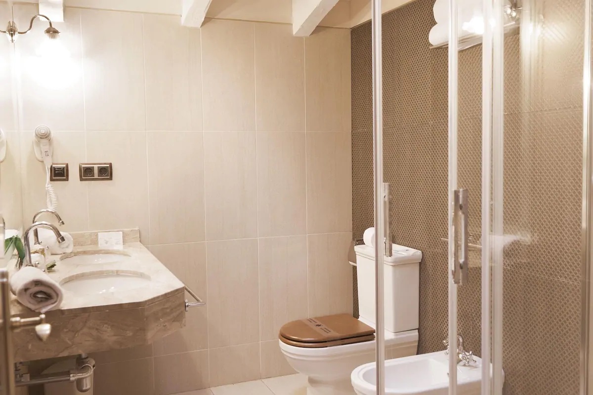 В номерах: банные принадлежности, фен, Wi-Fi, шкаф, кондиционер, сейф, мини-холодильник, письменный стол, телевизор, телефон.