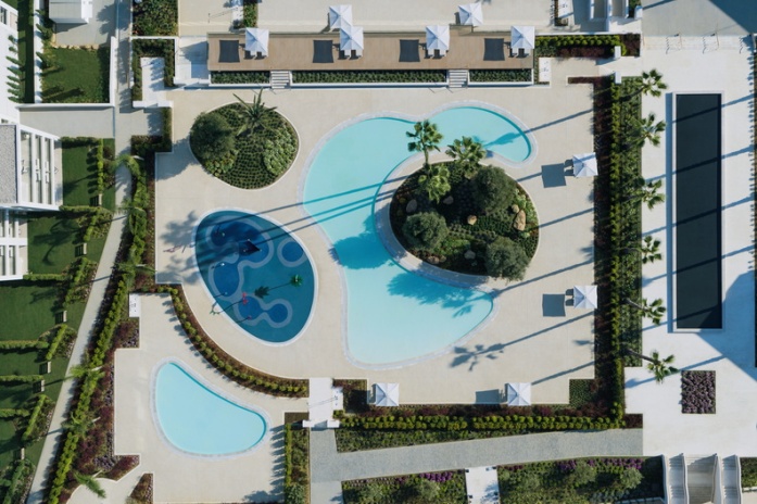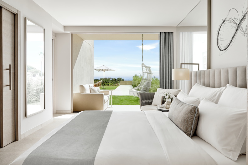 - Junior Suite Pool View/Side Sea View/Sea View (47 м², макс. 3 чел. или 2+2 в номере Pool View).