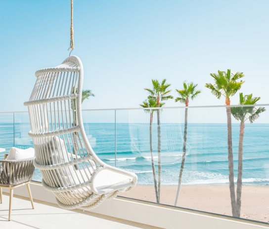 Номера расположены у пляжа, спальня с двуспальной кроватью, отдельная гостиная комната с диваном, ванная комната с ванной и душевой кабиной, меблированный балкон, вид на море, план номера;