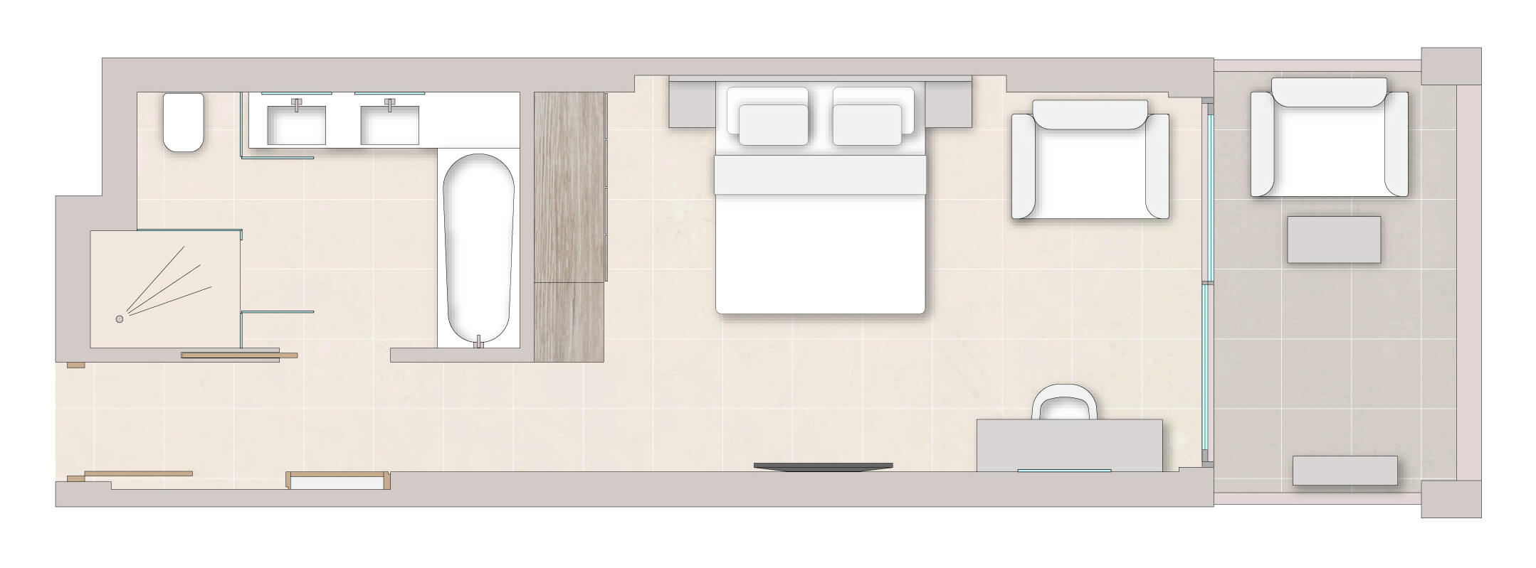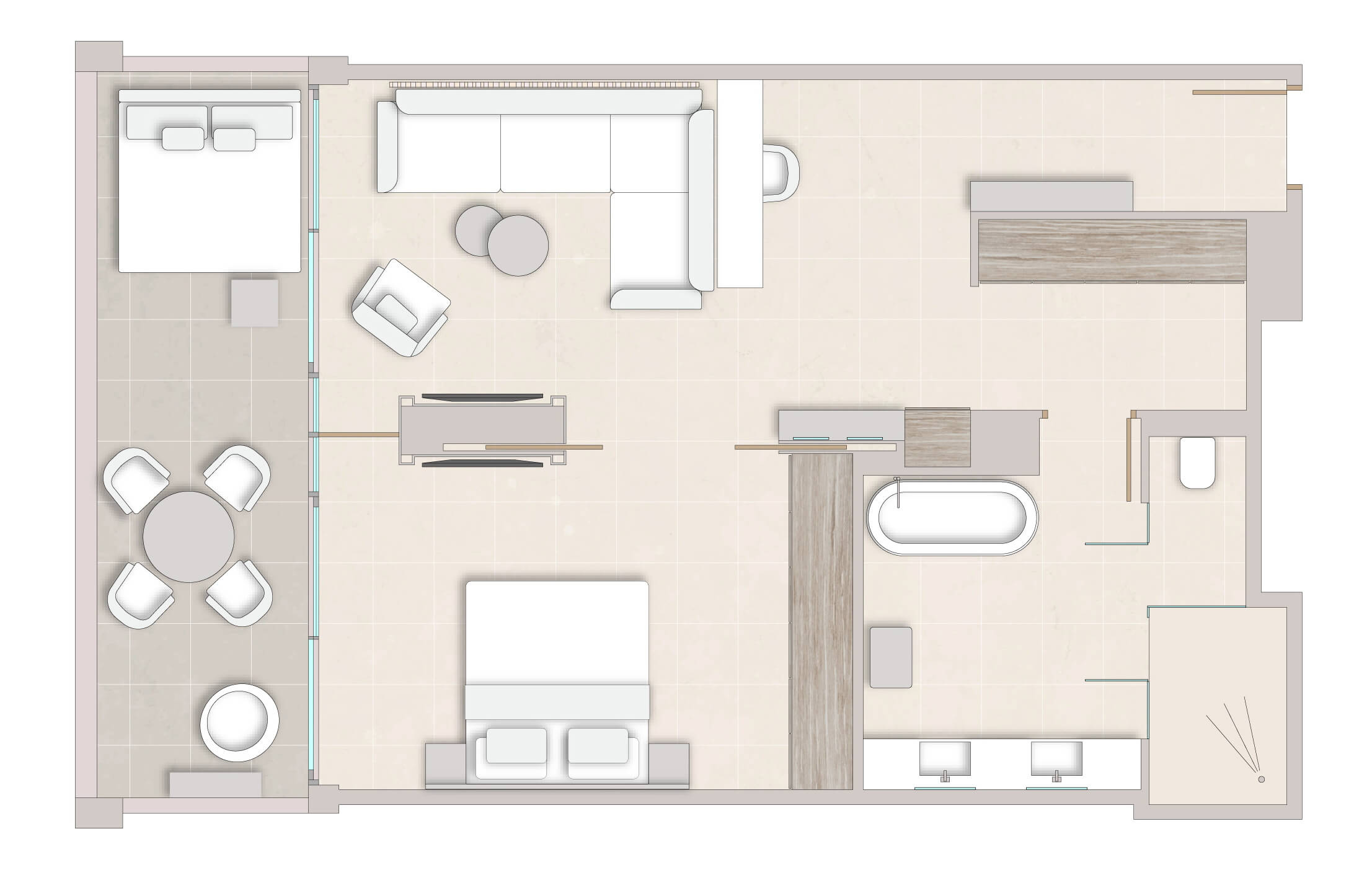 - One Bedroom Suite Side Sea View (66 - 70 м², макс. 3+1 или 2+2).