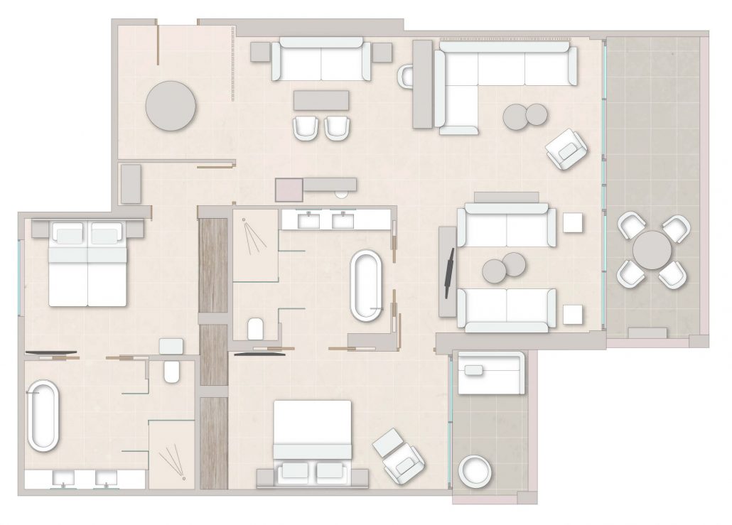 - Deluxe Two Bedroom Suite Sea View (125 м², макс. 4+2 или 3+3 или 2+4).