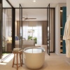 Номер расположен на первом этаже, у пляжа, 2 спальни, гардеробная, ванная комната, терраса с обеденным столом, беседка, частный сад, частный бассейн (33 м²).