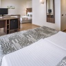 В номерах: Wi-Fi, банные принадлежности, фен, сейф (платно), телефон, телевизор с международными каналами, кондиционер, письменный стол, шкаф, зеркало для макияжа.