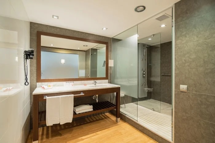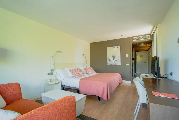 Номера расположены на 2-3 этажах, двуспальная кровать king-size или 2 односпальные кровати, зона гостиной с диваном-софа или креслом, ванная комната с ванной, угловой балкон или терраса (18 м²) с лежаками, пляжные полотенца в номере, пляжная сумка, тапочки, приветственный подарок, место на парковке отеля, вид на бассейн;