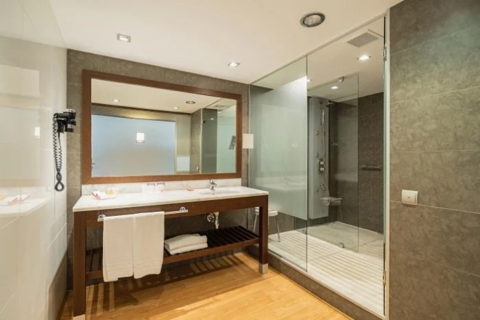 Номера расположены на 4-6 этажах, двуспальная кровать king-size или 2 односпальные кровати, зона гостиной с диваном-софа или креслом, ванная комната с гидромассажным душем, угловой балкон или терраса (18 м²) с лежаками, пляжные полотенца в номере, пляжная сумка, тапочки, приветственный подарок, место на парковке отеля, вид на море;