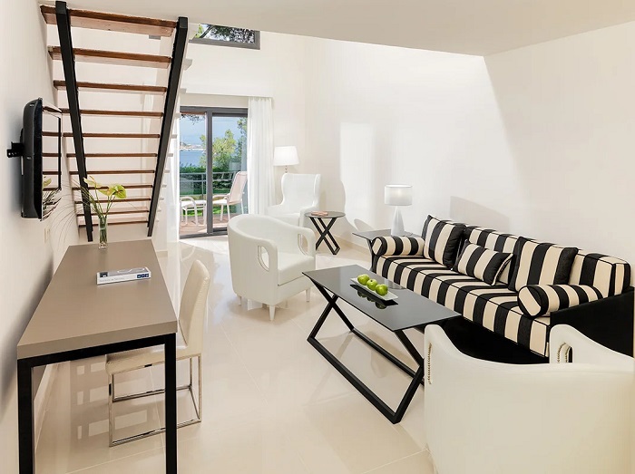 Отель состоит из 3-этажного и 4-этажного корпусов и 13 вилл (находятся немного ближе к морю). Общая территория комплекса – 29 000 м².